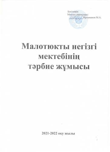 Малотюкты негізгі мектебінің 2021-2022 оқу жылындағы тәрбие жұмыстарының бағыттары мен мақсат міндеттері