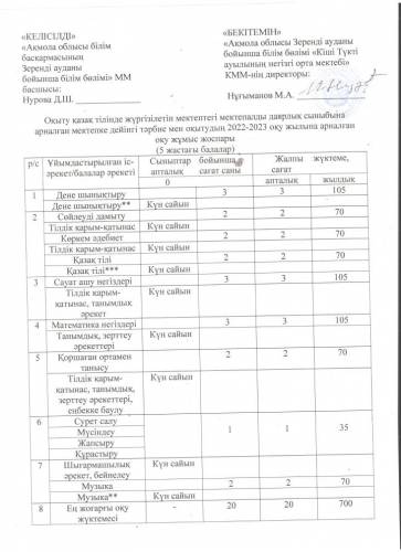 Бағаланатын кезеңге арналған жұмыс оқу жоспарлары мен ұйымдастырылған іс-шаралар әзірленді және бекітілді.
