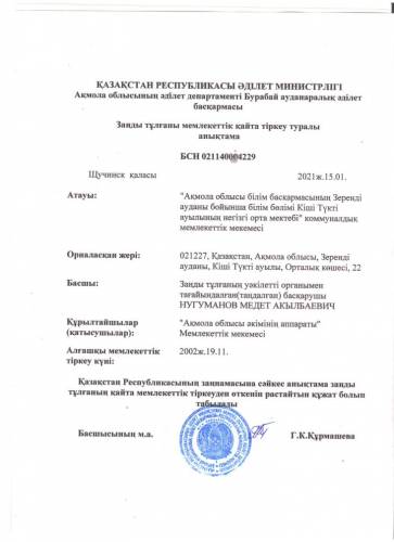 Заңды тұлғаны мемлекеттік қайта тіркеу туралы анықтама 2021 жыл