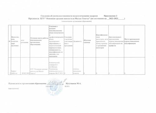 Профессорлық-оқытушылық құрамның штат саны туралы мәліметтер Әдістемелік ұсынымдарға 2-қосымшаға сәйкес басшының қолымен және мөрімен расталған кесте қоса беріледі, оның ішінде: