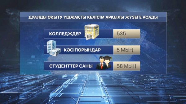 Елімізде дуалды оқыту жүйесімен білім алған жылдар студенттердің еңбек өтілі болып есептеледі, деп хабарлайды «Хабар 24». Жаңа заң биыл күшіне енді. Бұл туралы Білім және ғылым министрлігі хабарлады. Елде дәнекерлеуші, аспаз, электр мамандары жетіспейді. Елімізде...